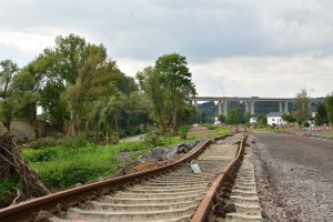 die Strecke bei Heimersheim wurde vollständig zerstört. Der wiederaufbau hat bereits begonnen und die alten Gleise wurden beiseite gelegt und der Boden begradigt.