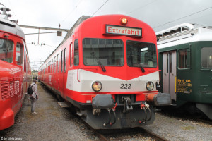 Im Jahre 2006 wollte eine Kantonsschülerin im Rahmen ihrer Abschlussarbeit einen sogenannten Mirage-Pendelzug der EBT (Emmental - Burgdorf - Thun - Bahn) vor der Verschrottung retten. Die Rettungsaktion gelang, schon bald konnte der Verein VPM (Verein Pendelzug Mirage) erworben werden. Bald folgte aber die Ernüchterung. Die gekauften Fahrzeuge waren nicht nur revisionsfällig sondern enthielten auch noch eine Menge Asbest. Eine Asbestsanierung der erworbenen Fahrzeuge hätte das Budget des kleinen Vereins um Welten überzogen. Da bot sich eine andere Gelegenheit. Bei der SOB hatten die baugleichen Triebwagen BDe 576 ausgedient. Es konnte der Triebwagen mit der Nummer BDe 576 054 übernommen werden. So wurde dieser Triebwagen in den Ablieferungszustand versetzt und der originale BDe 4/4 201 verschrottet. |