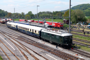Während SBB Historic eine Re 4/4' der ersten Serie mit Stirnwandtür am Depotfest in Olten präsentierte, repräsentierte die Re 4/4' 10034 von TEE Classics die 2. Serie mit glatter Front. |