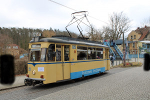 27 steht am Tag der Verabschiedung der Gotha-Wagen am 01.03.2025 an der Woltersdorfer Schleuse zur Abfahrt nach S Rahnsdorf bereit. |