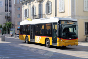 Bei PU Autopostale del Mendrisiotto sind die Hess Bergbusse in 3 verschiedenen Längen im Einsatz. Der hier zu sehende Wagen gehört mit 9.7m Länge zur kürzesten Version |