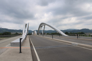 Die nördliche Seite der neuen Donau-Brücke. Hier wird vsl. ab 2032 die Linzer Lokalbahn in den neuen Nahverkehrsknoten Linz Urfahr-Ost einfahren, wo Anschluss zu den Straßenbahn-Linien 1 und 2 bestehen wird. |