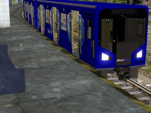 Ein Hk Zug mit der Volwerbung Herta BSC im Bahnhof Olympiastadion |