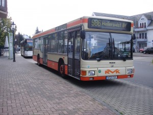 Dieser MAN NL 222 war am 14.10.06 auf der Linie 806 im Einsatz und hat gerade, von Heimerzheim kommend, seinen Endpunkt den Euskirchener Bahnhof erreicht. |