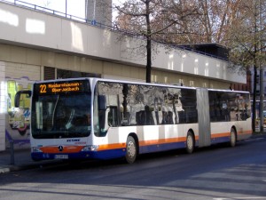 Bei strömenden Regen als Linie 4 am Platz d. Deutschen Einheit Bussteig C in Wiesbaden. |