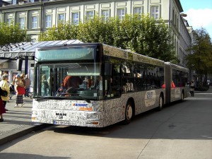 Ein MAN NG 313 mit einer bei Sonnenschein nicht zu érkennender Matrix als Linie 6A auf dem Weg nach Mainz. |