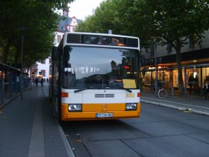 Dieser MB O407 gehörte mal dem Omnibusbetrieb Bayer in Ehingen und wird heute von der MVG als Fahrschulwagen benutzt. Hier erwischte ich ihn an der Kreuzung Mainzer/Kasteler Strasse in Wiesbaden-Biebrich. Was der wohl dort wollte?. |