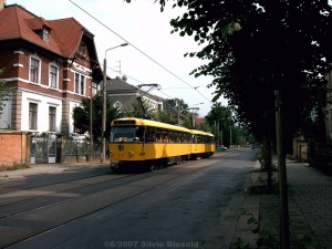 Kurz vor der Gotthard-Kuehl-Straße zwischen den Stationen Mockritzer Straße und Hugo-Bürkner-Straße. |