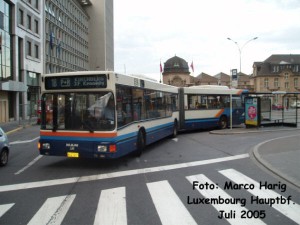 Hier ein Van Hool AG 300 des Unternehmens Demycars (Demy Schandeler) am Luxemburger Hauptbahnhof. |