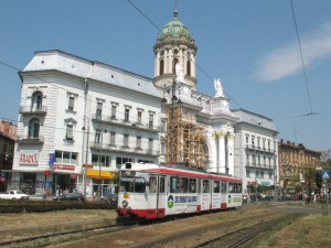 Tw 51 befährt die Abzweigung an der Haltestelle Podgoria - Die Kirche im Hintergrund rechts ist übrigens ein Neubau - bei meinem ersten Besuch 1997 wurde gerade mit dessen Bau begonnen. |