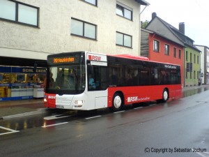 Am 29.02.2008 ist der Lion´s City mit dem Kennzeichen SB-RV 655 auf der Regio-Linie R9 von Saarbrücken nach Lebach eingesetzt. Er hält an der RSW-Haltestelle am Hauptbahnhof in Saarbrücken. |
