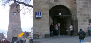 Eingang zur U-Bahn, der Aufzug ist Teil des Verbundtarifes und nur mit Fahrschein benutzbar, wenn man sich an der Tür verirrt, landet man im Innenhof des Weißen Turms statt in der U-Bahn. |