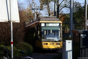 Bei der Eröffnung der neuen Straßenbahn Schlaffstätte in der Gerwigstraße in Karlsruhe hatte die Line 5 als Niederflurwagen Weltpremiere |