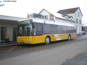 Eigentlich liegt die Konzession der Linie 665 Winterthur - Dättlikon bei Stadtbus Winterthur. Doch um lange Stilllager zu vermeiden beschloss man, dass Postauto tagsüber die Linie 665 fährt, dafür Stadtbus auf der Linie 670 von Postauto. HIer steht der MAN NL 313 Nr. 132 beim HB Winterthur |