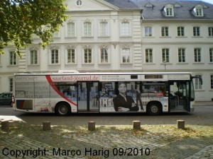 Hier zeigt sich einer der neuesten Citaro´s der Saarbahn GmbH in Form des Wagens 536 am Hauptfriedhof in Saarbrücken. Er trägt eine Werbung für die Existenzgründung |