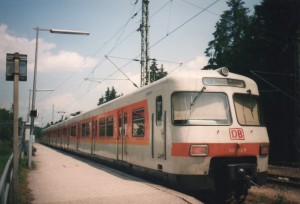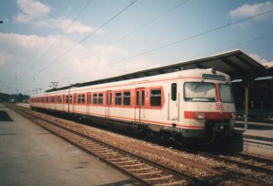 420 011 in orangener Farbgebung im Sommer 1996 in Holzkirchen. |