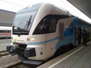 Grundlage ist der Stadler "Kiss" Ausstattung: 1. Klasse Komfort, Raucherabteil,4 Bistros,getrennte Toiletten und gratis W Lan im Zug.