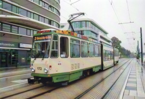 Tatra KTNF6 176 steht am 14.10.2015 am Hauptbahnhof zur Abfahrt nach Anton-Saefkow-Allee bereit.