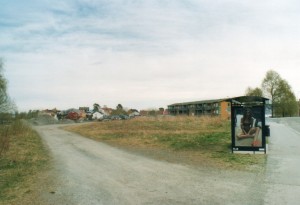 Die ehemalige Endschleife Lade im Mai 2016. Die Trikk fuhr hier früher vom Stadtzentrum kommend am heutigen Bushaltestellen-Unterstand vorbei und bog dann kurz vor dem gelben Haus auf der rechten Seite links in die Schleife ein, wo die Haltestelle zum Aussteigen war. Die Einstiegsstelle befand sich dort, wo das Gleis (heutiger Sandweg) vorne links neben der heutigen Bushaltestelle in die Straße einmündet. Die Bushaltestelle heißt heute Ringve Museum und wird durch die Linien 3 und 4 bedient, wobei die Linie 4 heute im wesentlichen die alte Straßenbahnstrecke bis Dalsenget bedient. Die Linie 3 fährt auf weiten Teilen mit der Linie 4 zusammen, zweigt aber im nördlichen Bereich zwischen Munkegate und Ringve Museum teilweise von der Linie 4 ab, so dass die Linie 3 heute nur noch Teile der früheren Straßenbahn nach Lade bedient. Die Linie 4 folgt dagegen mehr der früheren Straßenbahnstrecke nach Lade, so dass für ein Abfahren der früheren Straßenbahnstrecke nach Lade die Buslinie 4 gegenüber der Linie 3 vorzuziehen ist. |