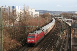 Im leichten Nebel wartet der Inter Regio 2085 vor einem Signal. Grund für den Stop war die Überpünktlichkeit des Zuges. Denn ein paar hundert Meter weiter wird diese Strecke eingleisig. Es musste noch die planmäßig entgegenkommende RB nach Mittweida abgewartet werden. |