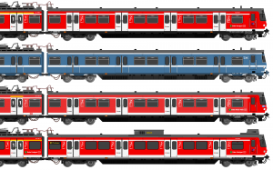 Deutschlands wohl zweitberühmtester S-Bahnwagen - hier in seinen frühen Jahren: 420 001 als Repräsentant _der_ 420er-Lackierung überhaupt, 420 118 in ihrer Münchner Abwandlung und 420 167 in der kleinen Modifikation, die die Bundesbahn in den 80ern für die Produktdesignlinie entwarf. 420 003 in seiner rot-grauen Prototyplackierung hab ich hier mal außen vorgelassen, später wurde er eh auf blau-grau umlackiert.