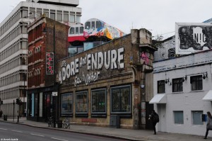 Wahrscheinlich aus den 30ern oder 40ern stammt dieses Plakat im New Yorker Guggenheim Museum, das Werbung für die damals neuen pneumatischen Türen der Londoner U-Bahnwagen macht. |