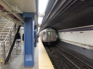 Tattergreis wendet vorzeitig an der 145. Straße. Denn Wochenende ist Bauarbeitenzeit in der New Yorker U-Bahn: In diesem Fall war die IND 8th Avenue Line zwischen 168 St und Inwood gesperrt, sodass die A ab 145 St Local Service fuhr und die C dort bereits endete. |