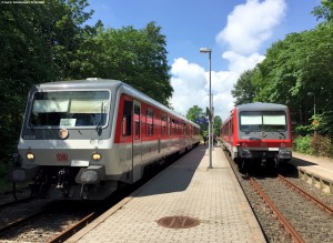 Mitte/Ende Juni war Kieler Woche. Dafür wurden alle 648er von der Regionalbahn Schleswig-Holstein zusammengezogen und auf den Strecken von und nach Kiel eingesetzt. Als Kompensation waren auf den anderen Strecken 628er unterwegs, die aus allen Teilen Deutschlands kam - dieser hier aus Bayern. |