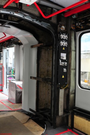Die Kunststoffverkleidungen sind zum Schutz noch abgeklebt.