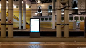 Eine Haltestelle des C-Tunnels. Hier kann man auch - derzeit weiterhin ohne Hochbahnsteige - zur D-Strecke umsteigen. Aber in die andere Richtung als eigentlich mal geplant: Unter dem Tunnelbahnhof befindet sich eine Bauvorleistung für den D-Tunnel, der bis heute nicht gebaut wurde, aber weiterhin Bestandteil von Debatten ist. |