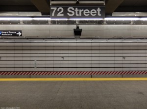 Wie immer bei IND-Haltestellen - und deren Baustil hat die MTA ja übernommen - wird der gesamte Bahnsteig von einer langen Verteilerebene überspannt. Der Boden wurde dabei erst im Endausbau eingezogen, der Rohbau war eine große Halle vom Gleisbett bis zur Tonnendecke. |