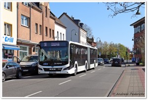 Der Bus ist hier zwischen der Ersatzhaltestelle Ottostraße und Do-Dorstfeld (S) auf der Rheinischen Straße zu sehen. |