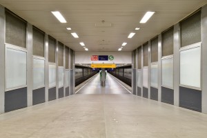 Zugang zur Tunnelhaltestelle Düsseldorf-Flughafen Terminal der S11.