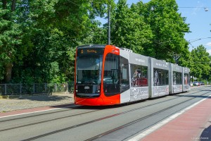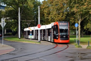 Eigentlich war der Plan, eine Linie 5 auf der Strecke zum Bürgerpark zu fotografieren. In der Mittagszeit war am 13.10.2021 - in der Betriebspause der Linie 5 - hier die Linie 10E zum Waller Friedhof im Einsatz. |