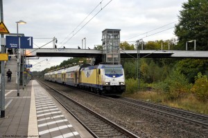 Die 146 532 hält hier am 14.10.2021 mit dem ME 81930 in Lauenbrück. Der Zug ist unterwegs als Linie RB41 nach Hamburg Hbf. |