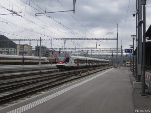 Noch immer trägt dieser Flirt die Werbung für das, Corona-bedingt kleine, Eröffungsfest des Ceneri Basistunnels. |