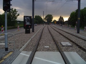 Wagen 4086 auf Testfahrt zur Schulstrasse um dort Fahrgäste aufzunehmen. |