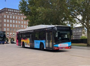 Am 25.06.2022 ist der Solaris 1932 auf der Linie 18 nach Bramfeld, Am Stühm Süd im Einsatz und hält hier an der Kirchenallee am Hauptbahnhof. |