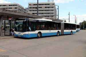 Nur noch 10 Neoplan Autobusse, von ursprünglich 86 sind noch in Zürich im Einsatz. Einer von ihnen ist der Wagen 554 der Dank automatischer Fahrgastzählung noch immer regelmässig und vielsieitig eingesetzt wird. |