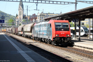 Die Re 484 012 erhielt eine Eigenwerbung von SBB Cargo zur Klimafreundlichkeit erhalten. |