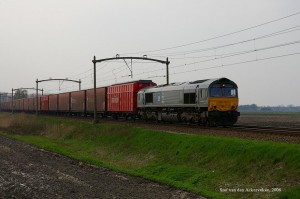 Zwischen Tilburg und Breda (NL). Mit dem Containerzug von Novara. Nur der erste Ludmilla (232 905) ist in Betrieb. |