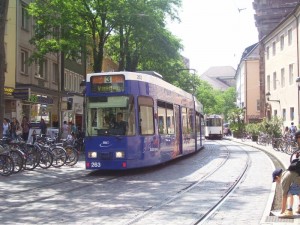 Freiburger Straßenbahn 271, hinter der Haltestelle Bertholdsbrunnen, 27.06.06. |