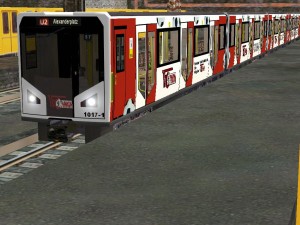 Ein Hk Zug mit der FC Union Werbung im Betriebshof Olympiasatdion |