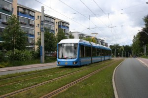 Einer der wenigen Variobahnen (noch) ohne Werbung auf dem Weg zur Endstelle Gablenz. |