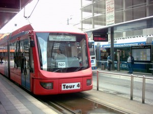 abfahrbereit an der Haltestelle der Linie 4 zum Hauptbahnhof. |