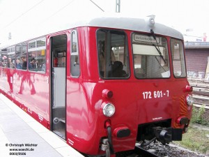 am 27.05.2006 bei der Fahrzeugausstellung in Berlin-Gesundbrunnen. Angekoppelt sind alte DR-Dostos. |