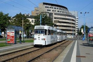 als Linie 4 an der letzten Haltestelle vor der Endstelle Hutholz. |