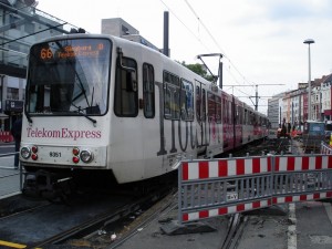 9355 auf der Rampe Heussallee vor dem Tulpenfeld-Hochhaus. Noch werden Wetten angenommen, wie lange die provisorische Rampe noch bestehen bleibt...