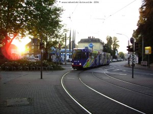 Wagen 121, als 408 beschildert, an der Abfahrthaltestelle der Schleife Brackel (In den Börten). Gleich macht er sich auf den Weg zum Westentor. |