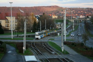 auf der Linie 2 zwischen der Endstelle Bahnhof Zwötzen und dem Betriebshof GVB. |